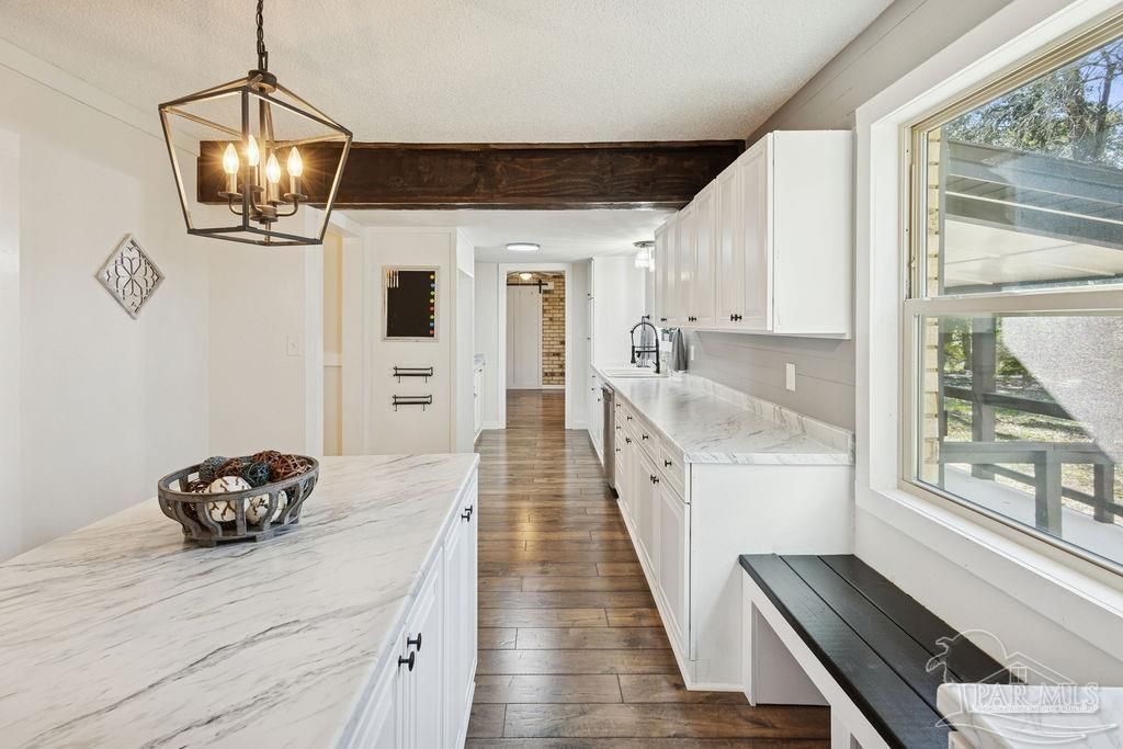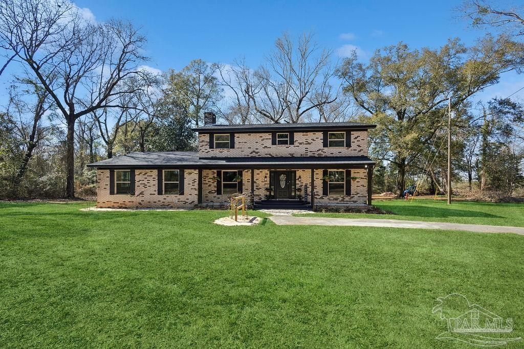 Fully renovated 3,190 sq ft all-brick home situated on 2.3 private acres in Chumuckla, FL. Renovated top to bottom, this property offers space, flexibility, and major system updates for true move-in-ready living. Inside, you'll find engineered laminate flooring, two spacious living areas downstairs, and two back-to-back fireplaces that create warmth and character between the main gathering spaces. The large, centrally located kitchen flows seamlessly into a spacious formal dining room, ideal for entertaining or hosting family gatherings. A convenient half bath is located off the main hallway for guests. Upstairs features four bedrooms and...read more