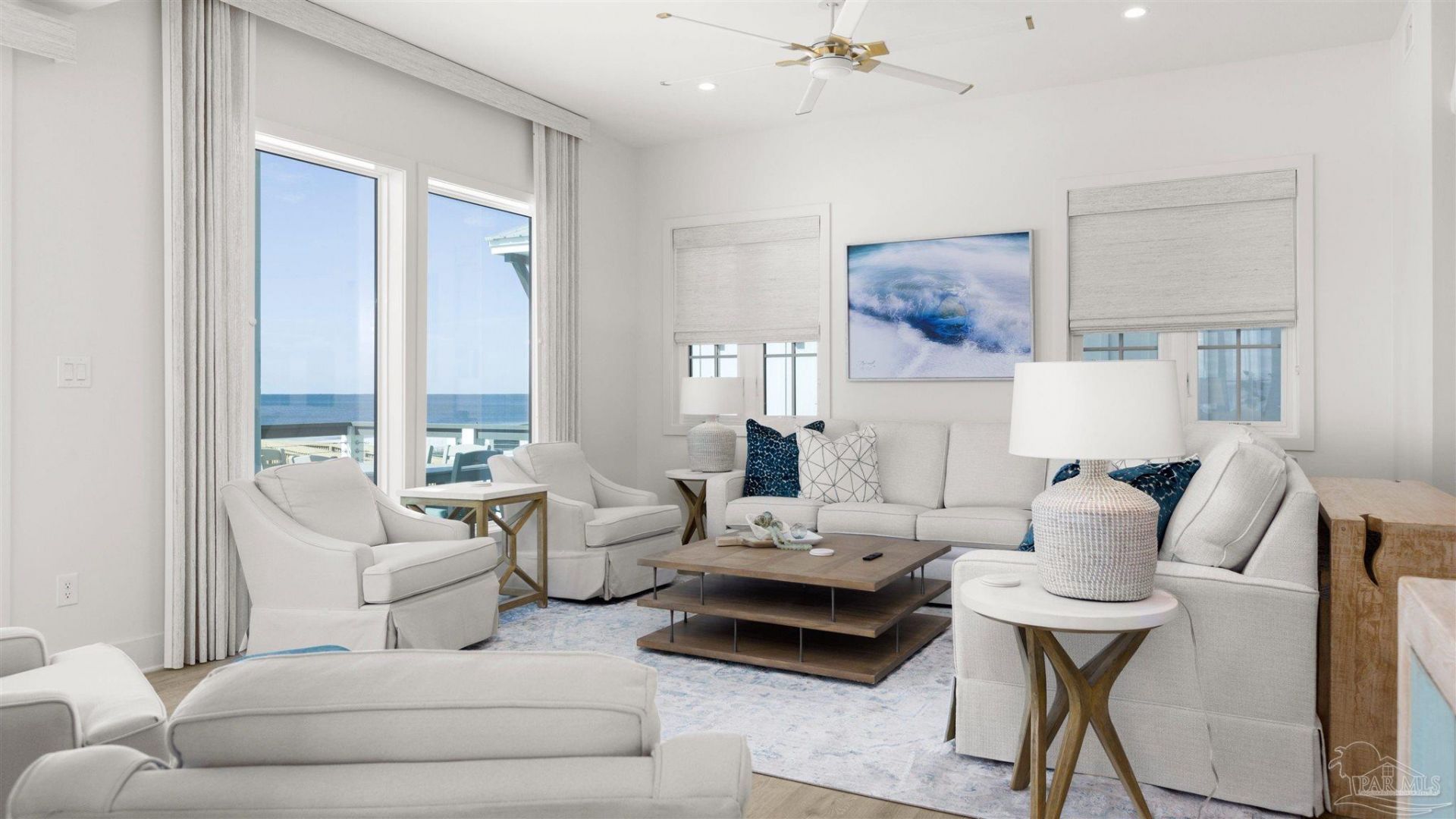 $242,000+ IN RENTALS ALREADY ON THE BOOKS FOR 2026 | DIRECT GULF-FRONT LUXURY HOME | PRIVATE POOL +ELEVATOR + 3 GULF-FRONT DECKSRare opportunity to own Emerald Bluff, a stunning 5BR / 5.5BA direct Gulf-front beach house inthe exclusive Bluffs community, located in the heart of Orange Beach right next to Coastal. This three-story luxury home sleeps 12-16guests and offers panoramic Gulf views from nearly every room.Designed for entertaining and rental performance, the open-conceptmain living area features 10' ceilings, a wall of Gulf-front windows, a fully equipped kitchen, dining seating for 8 plus 6 at the bar, and awet bar. Multiple living...read more