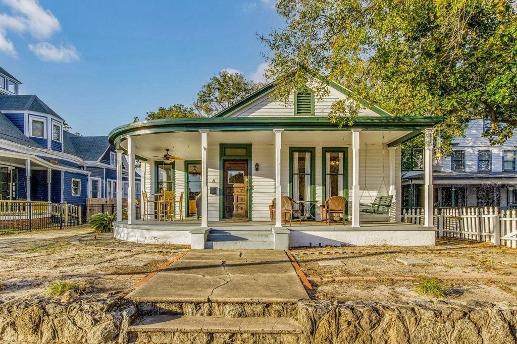This turn-of-the-twentieth-century Victorian home is situated in Historic North Hill at the top of the hill on Palafox St overlooking Downtown Pensacola, where you can enjoy summer breezes from Pensacola Bay from the comfort of your curved wraparound porch. Stepping over the threshold into the spacious living room, you are immediately in awe of the beautiful original hardwood floors, high ceilings, and impressive South-facing windows that provide an abundance of natural light. The great hall leads past a front bedroom on the left and a full bath that can be used for guests visiting or for the bedroom. To the right is a spacious dining room....read more