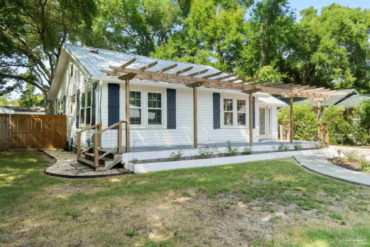 Nestled in the picturesque neighborhood of East Pensacola Heights, this charming 2-bedroom cottage is surrounded by majestic oak trees adorned with Spanish moss. The cottage boasts a durable metal roof and classic shutters, adding to its timeless appeal. Inside, you'll find recently updated kitchen and bathrooms, ensuring modern comfort and style. The home is bathed in natural light, creating a warm and inviting atmosphere. It also features a large front porch with a pergola, perfect for enjoying the serene surroundings. Two yard buildings provide ample storage space or potential for a workshop. Located within walking distance to local...read more