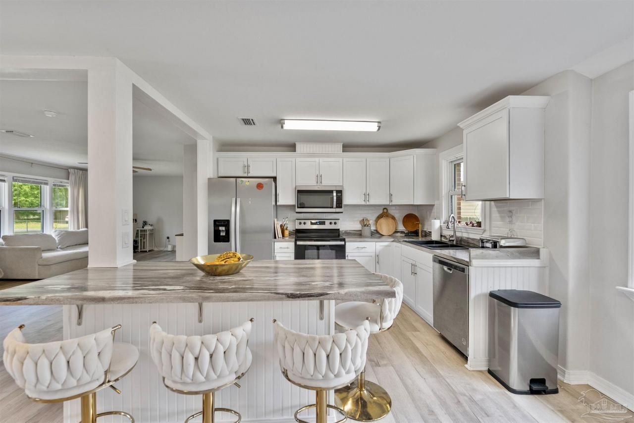 Market Correction ** Move in ready home - Absolutely stunning! NO HOA. This beautifully upgraded corner-lot home features an open floor plan with 4 spacious bedrooms and 2 bathrooms. Enjoy a modern kitchen and updated bathrooms, complete with a refrigerator, stove, microwave, dishwasher, cabinets, and lighting. Additional upgrades include LVL flooring, fresh carpet, a fenced yard, and more. Roof replaced in 2020 â?? move-in ready and made to impress! Conveniently located just minutes from NAS and Corry Station, and only a short drive to downtown. Plus, there's no HOA â?? giving you more freedom and flexibility!