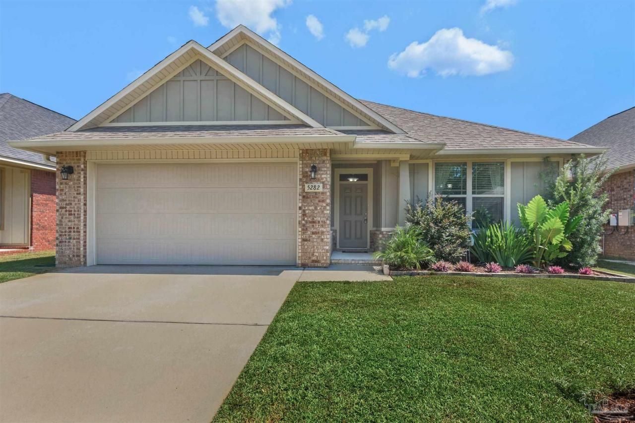 MUST SEE! Stunning Move in Ready, Semi-Custom, brick home located in the Parkwood Commons S/D Pace, FL. Completed in 2018, this one owner home features one of the best functional interior lay-outs that I have seen in a long time. The inviting foyer welcomes you to the great room or dining area. The kitchen offers gleaming stainless appliances including a recently purchased refrigerator which contrasts nicely with the all wood cabinets and breakfast bar. The main bedroom is large enough for all of your oversize furnishings and a pleasing Octagon hop up ceiling complete with classic crown molding for that custom look. A double vanity, separate...read more